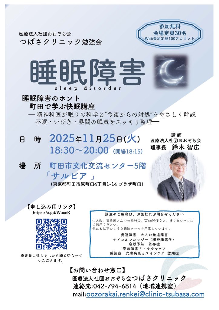医療法人社団おおぞら会つばさクリニックでは、地域の支援職・医療・福祉・企業や教育関係者の皆さま、また一般の方々にもご参加いただける勉強会を開催しています。