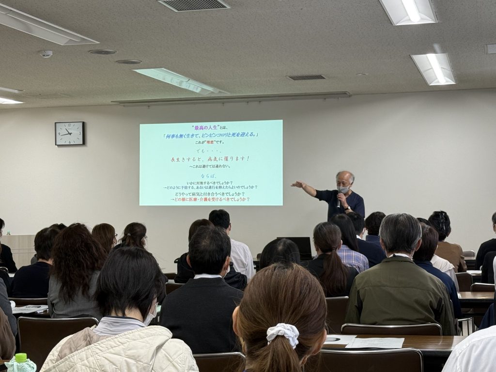 講演では、「住み慣れた地域やご自宅で、最期まで自分らしく過ごす」という在宅医療の理念に触れながら、その実現のために地域全体がどのような役割を果たせるかについても語られました。