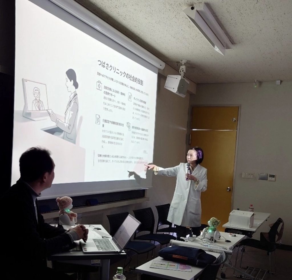 つばさクリニック相模原・町田で精神科外来を担当する 銀谷 翠 医師 が、オリィ研究所さん、訪問看護ステーションむぎさん、相模湖地域包括支援センターの皆さまとともに、分身ロボット「OriHime」を活用した支援に関する事例発表に登壇しました。